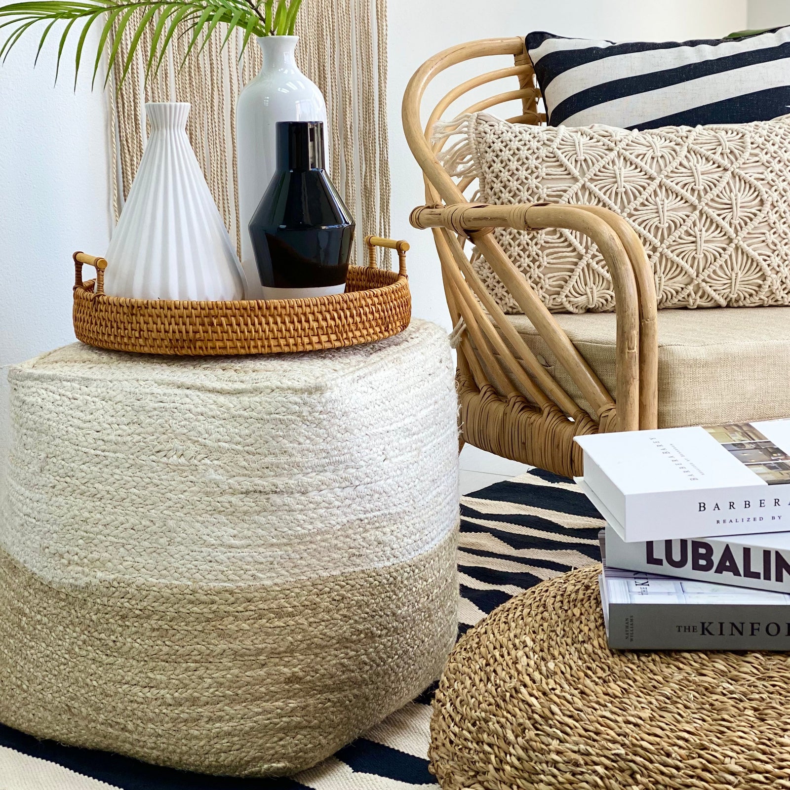Jute and Coconut Ivory Natural Square Ottoman $59.00 $119.00