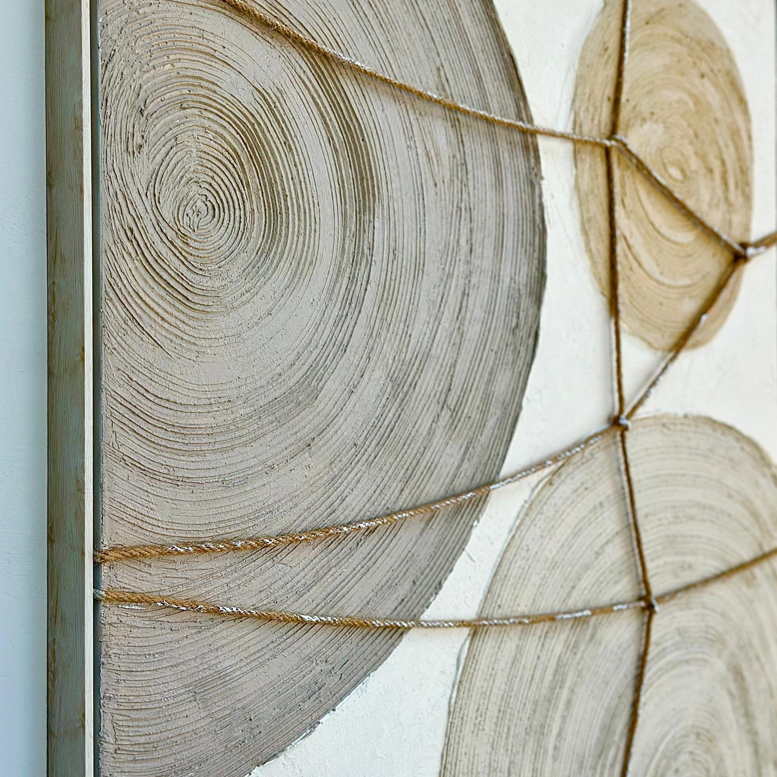 Add a touch of luxury and uniqueness to your home decor with our Soga Handcrafted Wall Art. Hand painted in oleo with an artistic real rope design this one-of-a-kind masterpiece features a modern and clean look with its neutral colors and natural frame. Elevate your space with our handcrafted work of art.