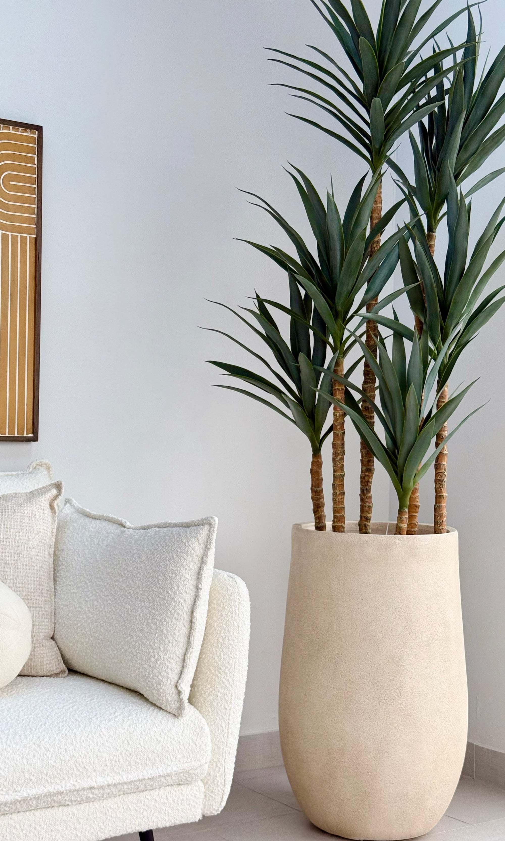 Elevate your space with our Concrete Smooth Finish Fiber Clay Planter. Perfect for indoor or outdoor use, it beautifully complements both artificial and natural plants with its intricate design. Resistant to high temperatures and cracking, it includes drainage for natural plants. Each sizes sold separately. Enhance your decor with this luxurious, eye-catching planter.