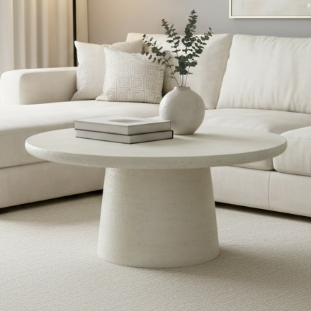 Faux Stone Pedestal Round Coffee Table